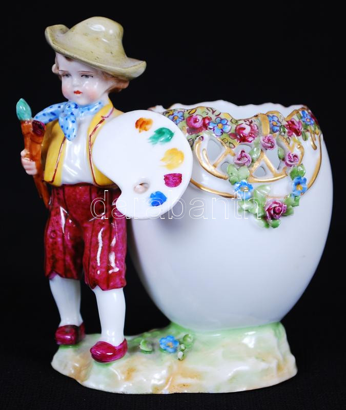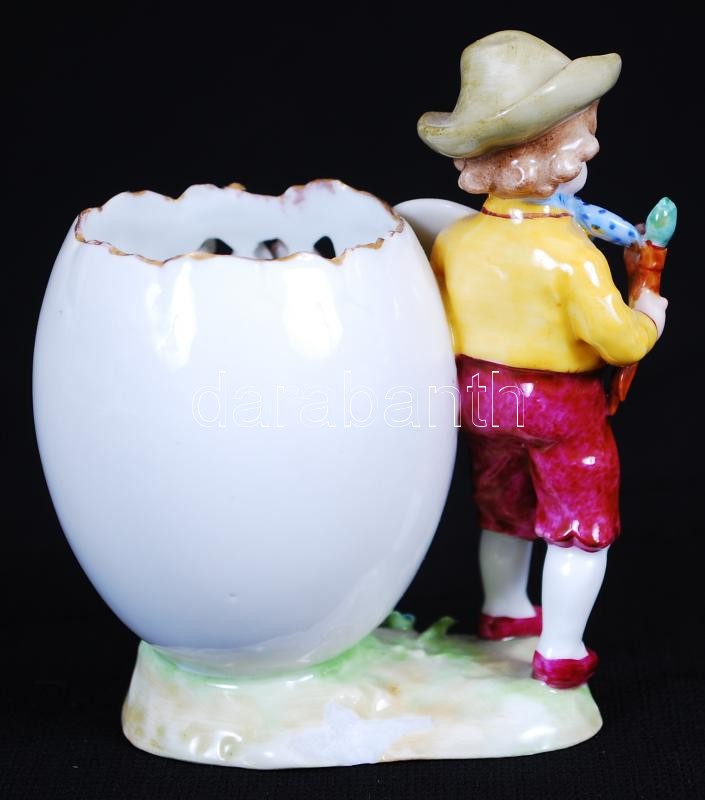 Beschreibung: Kis tojásfestő, kézzel festett, aranyozott porcelán figura (apró sérüléssel) /