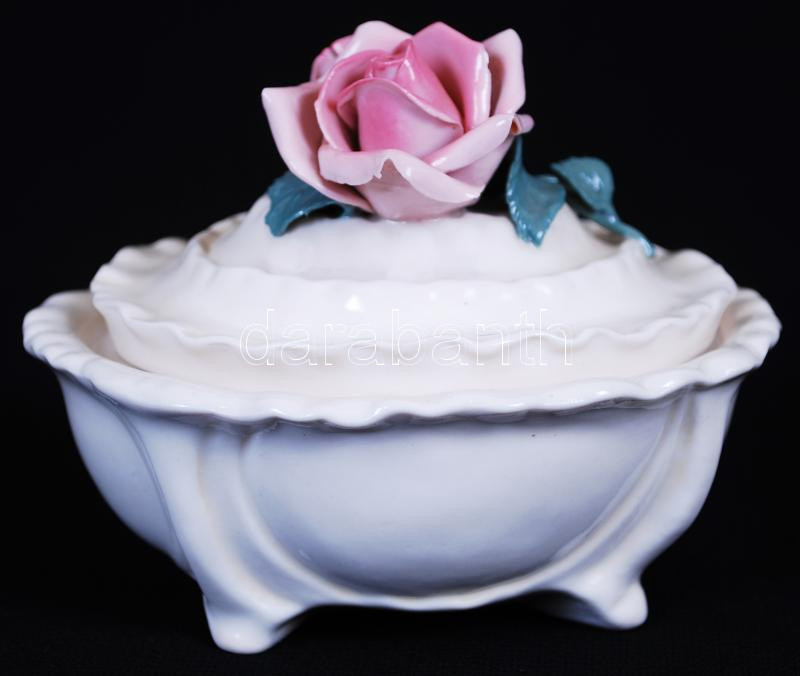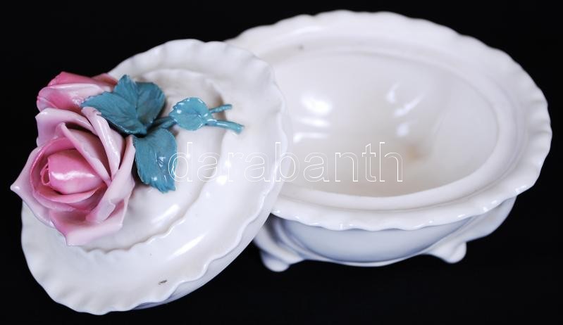 Ens porcelain bonbonniere with a rose on top, flawless condition, 13x9x11cm