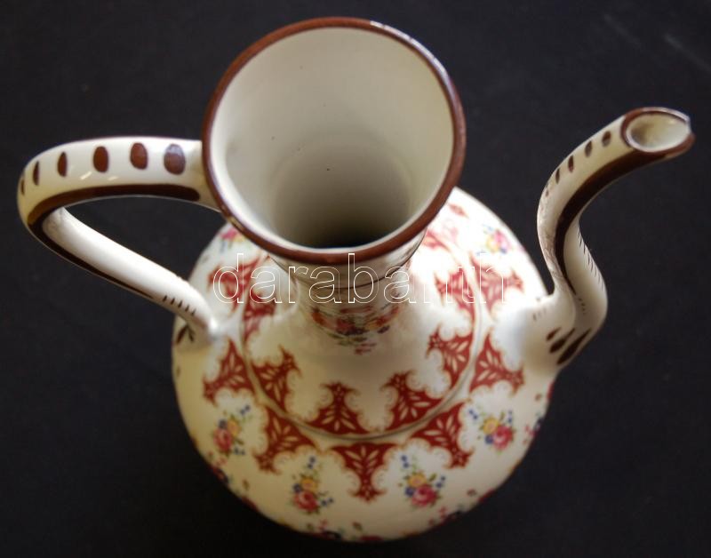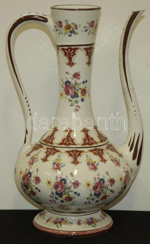Beschreibung: XX. század elejéből származó nagyméretű porcelán kancsó javított csőrrel /