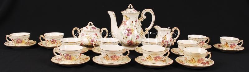 Beschreibung: Zsolnay pillangó mintás mokkás 12 személyes készlet, kézzel festett, hibátlan, jelzett / Zsolnay coffee set in flawless condition