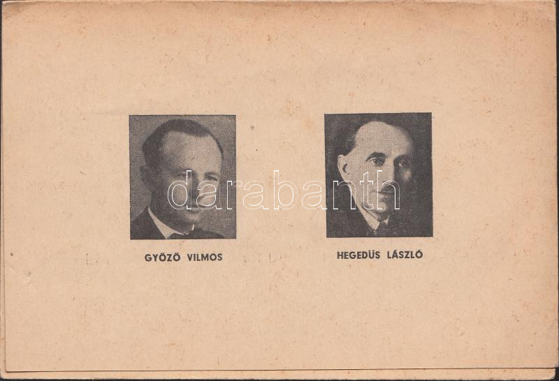 Győző Vilmos, Hegedűs László; kinyitható kottás lap https://www.darabanth.com/de/181-Fernauktion/181.0/Ansichtskarten/Musik-Musikanten~1000377/Gyozo-Vilmos-Hegedus-Laszlo-kinyithato-kottas-lap~II649576
