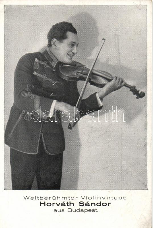 Horváth Sándor, hegedű virtuóz, saját kezű aláírásával / violinist, si... https://www.darabanth.com/de/181-Fernauktion/181.0/Ansichtskarten/Musik-Musikanten~1000377/Horvath-Sandor-hegedu-virtuoz-sajat-kezu-alairasaval-violinist-signed-EB~II648961