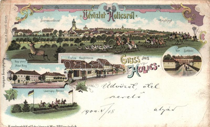 Holics hunting, horserace, litho (b) https://www.darabanth.com/de/181-Fernauktion/181.0/Ansichtskarten/Slowakei~400007/Holics-hunting-horserace-litho-b~II648489