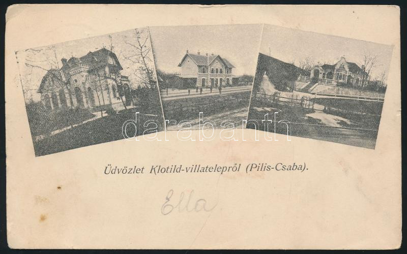 Piliscsaba Klotildliget vasútállomás, villák (EK) https://www.darabanth.com/de/181-Fernauktion/181.0/Ansichtskarten/Ungarn~400005/Piliscsaba-Klotildliget-vasutallomas-villak-EK~II646213