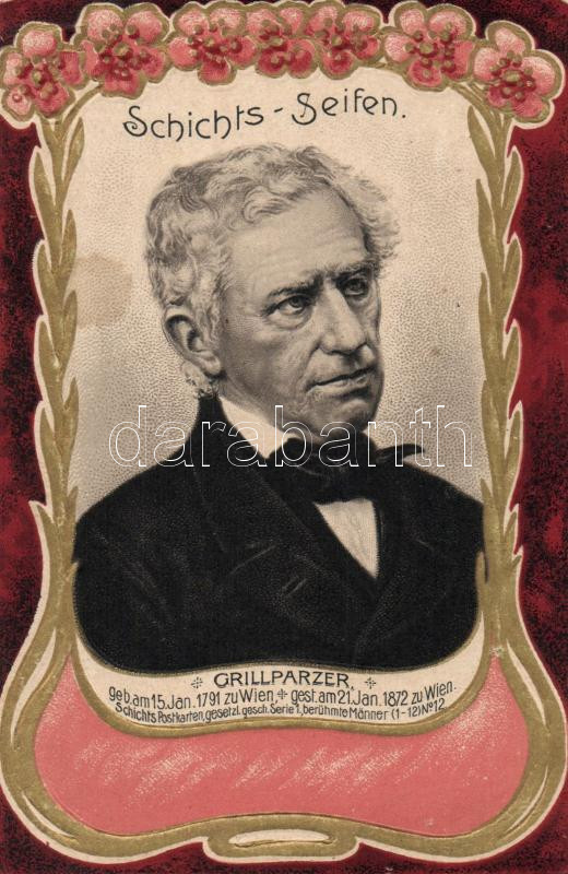 Schichts Seifen advertisement, Franz Grillparzer Emb. Art Nouveau lith... https://www.darabanth.com/de/181-Fernauktion/181.0/Ansichtskarten/Werbungen~1000363/Schichts-Seifen-advertisement-Franz-Grillparzer-Emb-Art-Nouveau-litho~II648956