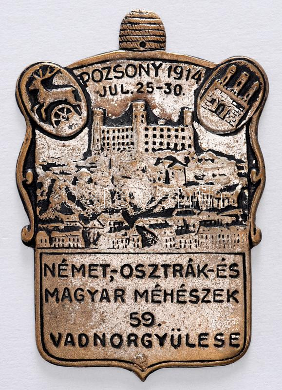 1914. "Német-Osztrák-és Magyar Méhészek 59. Vándorgyűlése Pozsony 1917. Júl.25-30." fém lemezjelvény csat nélkül T:2-
