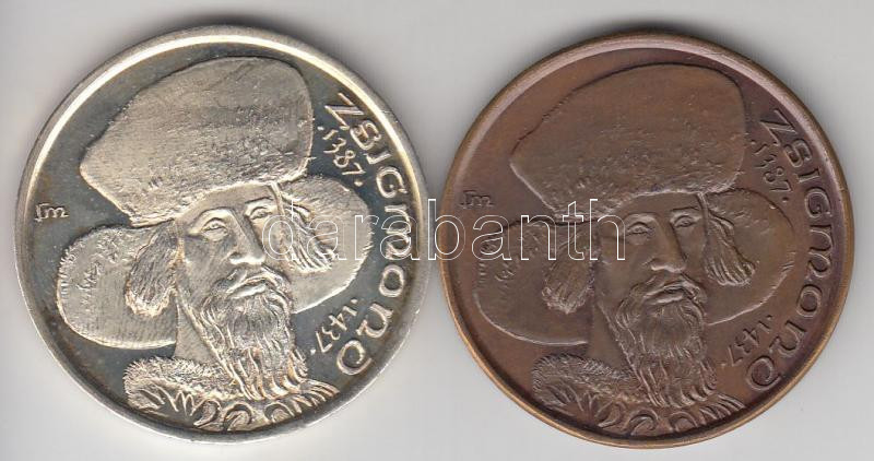 Beschreibung: Fritz Mihály (1947-) / Szabó Géza (1939-) 1987. "MÉE Székesfehérvár - Zsigmond" Ag(0.900)/35,73g és Br emlékérem (42,5mm) pár T:PP,1