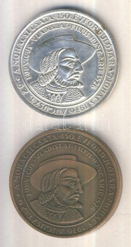 Rétfalvi Sándor (1941-) / ÁPV 1976. "MÉE VII. Vándorgyűlése Pécs-Mohács / Mohácsi Csata 450. évfordulója" Ag(0.800)/25,09g és Br emlékérem pár (42,5mm) T:1