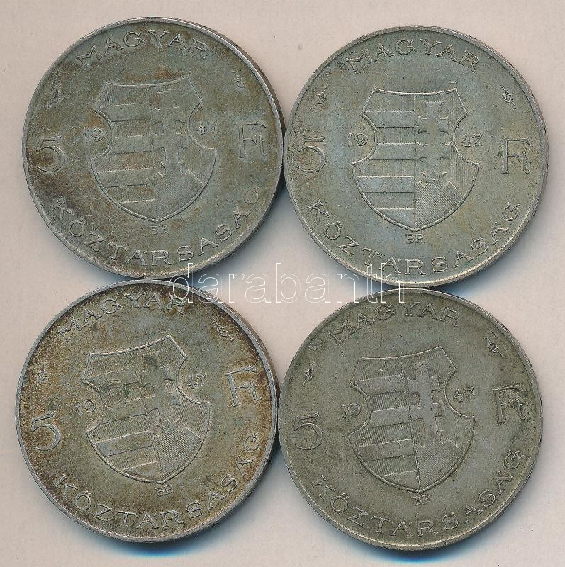 1947. 5Ft Ag "Kossuth" (4x) T:vegyes https://www.darabanth.com/de/181-Fernauktion/181.0/Numismatik/Ungarische-Munzen~1000391/1947-5Ft-Ag-Kossuth-4x-Tvegyes~II645462
