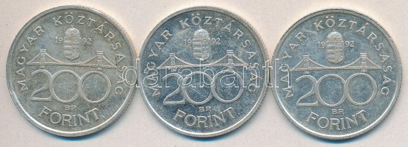 Beschreibung: 1992. 200Ft Ag "MNB" (3x) T:2