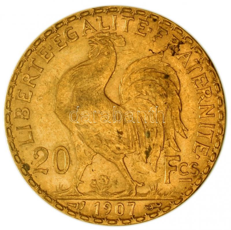 Franciaország/Modern Köztársaság 1907. 20Fr Au "Kakas" utánv... https://www.darabanth.com/de/181-Fernauktion/181.0/Numismatik/Ungarische-und-Auslandische-Gold-Munzen~1000393/FranciaorszagModern-Koztarsasag-1907-20Fr-Au-Kakas-utanveret-645g0900-T2-3plus-3Cbr3EFra~II633564