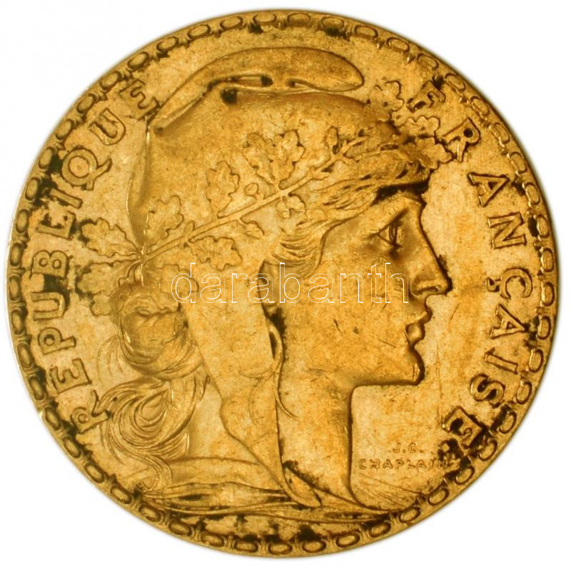 Franciaország/Modern Köztársaság 1909. 20Fr Au "Kakas" utánv... https://www.darabanth.com/de/181-Fernauktion/181.0/Numismatik/Ungarische-und-Auslandische-Gold-Munzen~1000393/FranciaorszagModern-Koztarsasag-1909-20Fr-Au-Kakas-utanveret-644g0900-T2-3-3Cbr3EFran~II633559