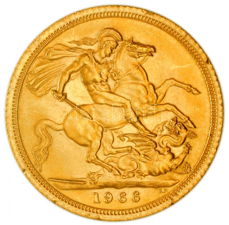 Nagy-Britannia 1966. Sovereign Au "II. Erzsébet / Szent György" (8.01g/0.917) T:2 ph.