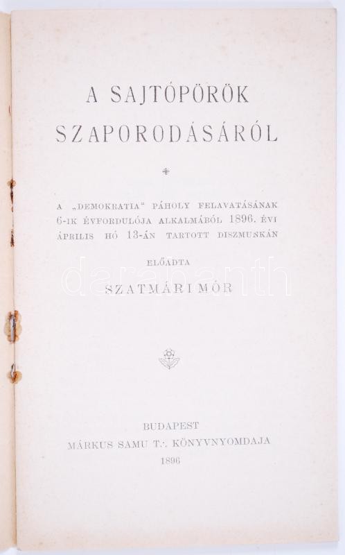 A "Demokratia" páholy könyvtára XXIV.: Szatmári Mór: A sajtó... https://www.darabanth.com/de/182-Fernauktion/182.0/Andere-Sammelgebiete/Bucher-Freimauer~400045/A-Demokratia-paholy-konyvtara-XXIV-Szatmari-Mor-A-sajtoporok-szaporodasarol-Bp-18~II655535