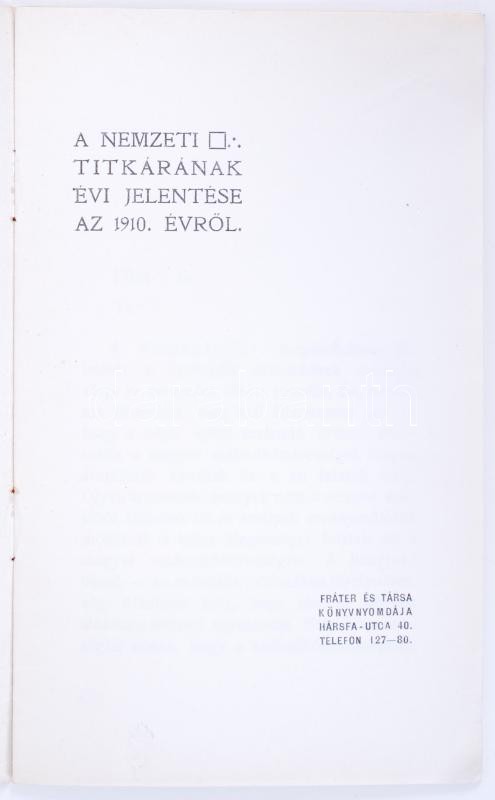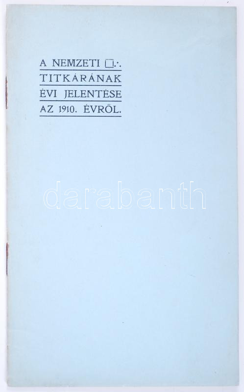 A Nemzeti titkárának évi jelentése az 1910. évről. Fűzve, 12p https://www.darabanth.com/de/182-Fernauktion/182.0/Andere-Sammelgebiete/Bucher-Freimauer~400045/A-Nemzeti-titkaranak-evi-jelentese-az-1910-evrol-Fuzve-12p~II655546