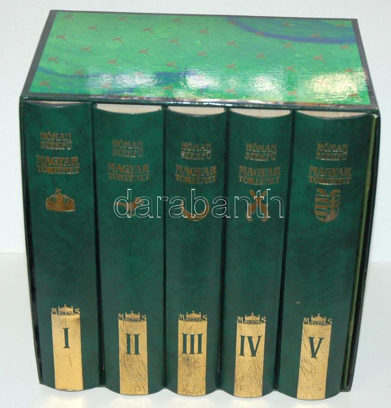 Hóman-Szekfű: Magyar történet I-V. hasonmás kiadás Maecenas Kiadó, 1990. Aranyozott félbőr kötésben, kísérő tanulmánnyal, hibátlan karton tékában, hibátlan állapotban