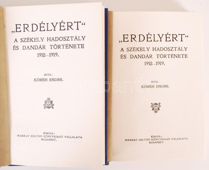 Koréh Endre: Erdélyért I-II. A székely hadosztály és dandár története ... https://www.darabanth.com/de/182-Fernauktion/182.0/Andere-Sammelgebiete/Bucher-Militaria~400044/Koreh-Endre-Erdelyert-I-II-A-szekely-hadosztaly-es-dandar-tortenete-1918-1919-Budapest-1~II653823