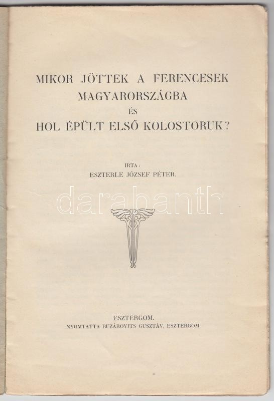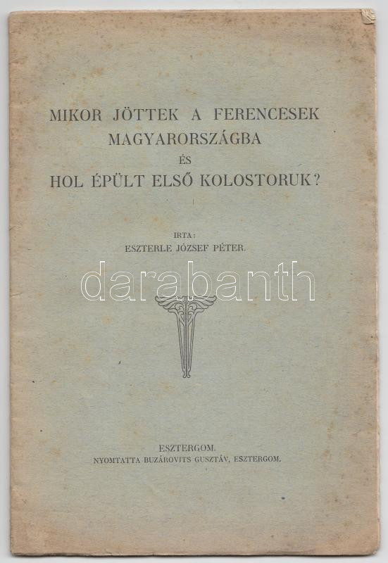Eszterle József Péter: Mikor jöttek a ferencesek Magyarországba és hol... https://www.darabanth.com/de/182-Fernauktion/182.0/Andere-Sammelgebiete/Bucher-Religion~400034/Eszterle-Jozsef-Peter-Mikor-jottek-a-ferencesek-Magyarorszagba-es-hol-epult-elso-kolostoruk~II640442
