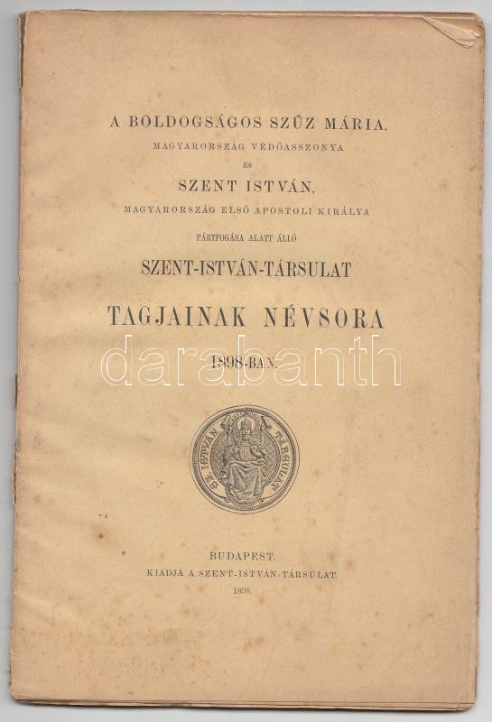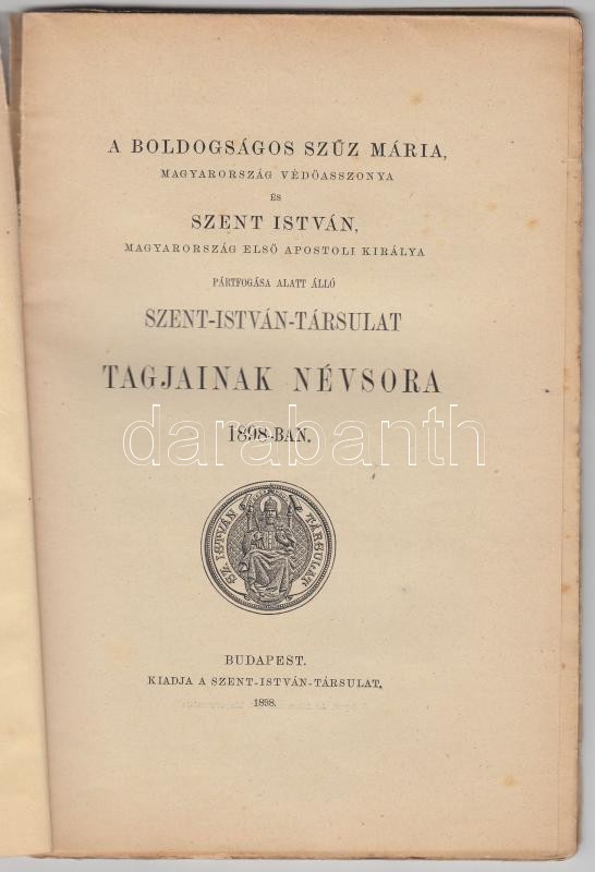 A Szent István Társulat tagjainak névsora 1898-ban 82p. https://www.darabanth.com/de/182-Fernauktion/182.0/Andere-Sammelgebiete/Bucher-Sonstige-Raritaten~400048/A-Szent-Istvan-Tarsulat-tagjainak-nevsora-1898-ban-82p~II640439