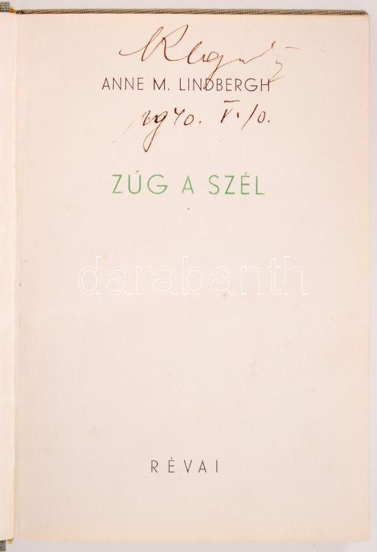 Anne M. Lindbergh: Zúg a szél. Bp., é.n., Révai. Kiadói egészvászon kö... https://www.darabanth.com/de/182-Fernauktion/182.0/Andere-Sammelgebiete/Bucher-Sonstige-Raritaten~400048/Anne-M-Lindbergh-Zug-a-szel-Bp-en-Revai-Kiadoi-egeszvaszon-kotesben-jo-allapotb~II652910