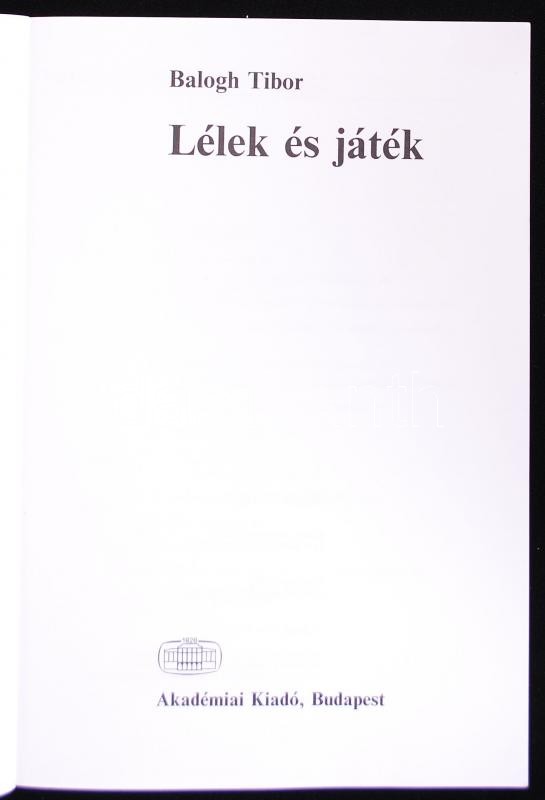 Balogh Tibor: Lélek és játék. Bp., 2001, Akadémiai Kiadó https://www.darabanth.com/de/182-Fernauktion/182.0/Andere-Sammelgebiete/Bucher-Sonstige-Raritaten~400048/Balogh-Tibor-Lelek-es-jatek-Bp-2001-Akademiai-Kiado~II653731