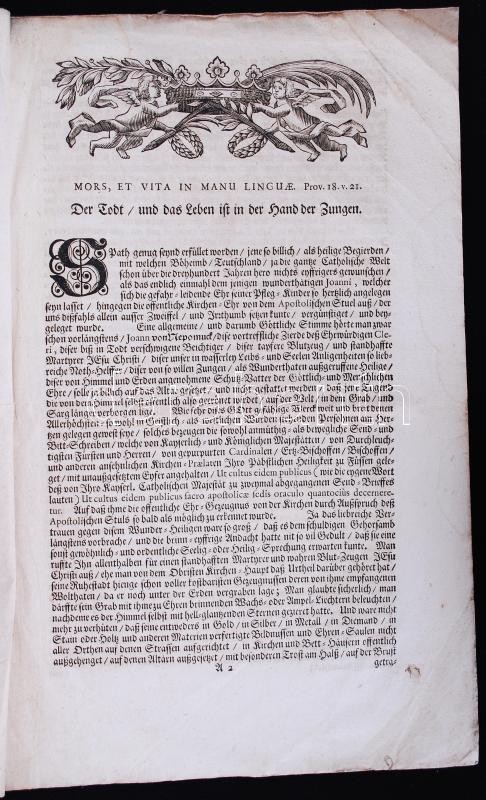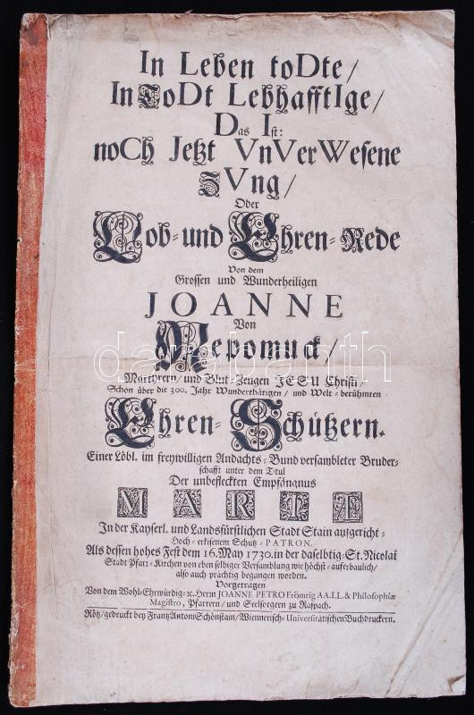 Joanne Petro: In Leben todte in Todt Lebhasstige das ist noch jetzt... oder Lob und Ehren-Rede von dem Strossen und Wunderheiligen Joanne von Nepomuk... Wien, 1730. 16p.