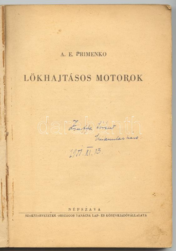 Primenko: Lökhajtásos motorok. Moszkva 1947. Népszava. https://www.darabanth.com/de/182-Fernauktion/182.0/Andere-Sammelgebiete/Bucher-Wissenschaften~400043/Primenko-Lokhajtasos-motorok-Moszkva-1947-Nepszava~II614034