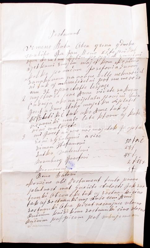 1887 Végrendelet Prochott község bélyegzőjével, 1Ft okmánybélyeggel / ... https://www.darabanth.com/de/182-Fernauktion/182.0/Andere-Sammelgebiete/Dokument~400016/1887-Vegrendelet-Prochott-kozseg-belyegzojevel-1Ft-okmanybelyeggel-Testament-with-stamp-o~II640246