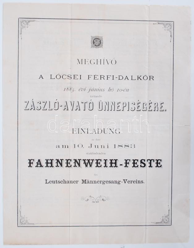 1883 Meghívó a Lőcsi Férfi Dalkör zászló avató ünnepségére / Invitatio... https://www.darabanth.com/de/182-Fernauktion/182.0/Andere-Sammelgebiete/Drucksachen~400039/1883-Meghivo-a-Locsi-Ferfi-Dalkor-zaszlo-avato-unnepsegere-Invitation-for-the-Levoce-si~II628911