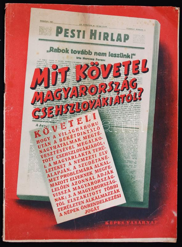 1938 október 23. Mit követel Magyraország Csehszlovákiától - A Pesti Hírlap különszáma, a megszkadt Magyar-Csehszlovák tárgyalások után, a novemberi döntés előtt / What Hungary wants from Czechslovakia. Special edition of a magazine!