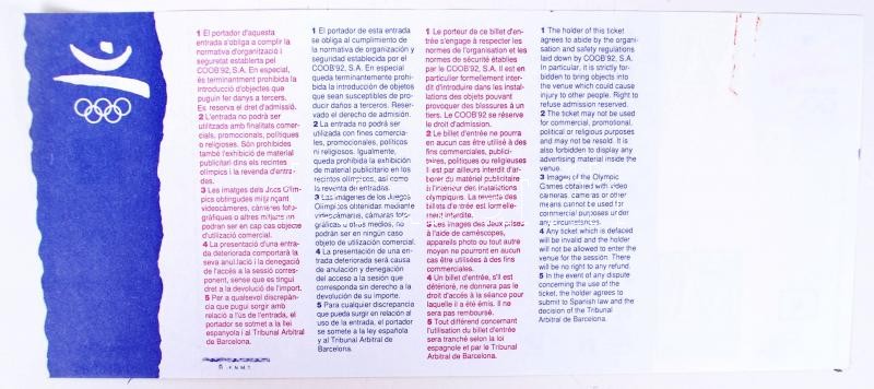 1992 Barcelona olimpiai belépőjegy. 21×9 cm / Olympic ticket https://www.darabanth.com/de/182-Fernauktion/182.0/Andere-Sammelgebiete/Drucksachen~400039/1992-Barcelona-olimpiai-belepojegy-21C3979-cm-Olympic-ticket~II654733
