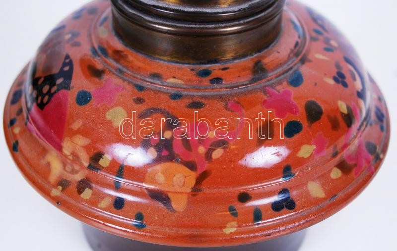 Beschreibung: Gebrüder Brünner Wien porcelán betétes petróleum lámpa kézzel festett, jelzett, felső rész hiányzik, alján üveg hibátlan, porcelánon apró lepattanás, m:20 cm / Vintage glass oil lamp