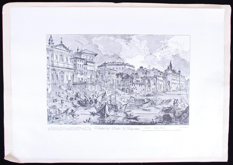 Beschreibung: Giovanni Battista Piranesi (1720-1778): Veduta del Porto di Ripetta. Modern nyomat reprodukció, kartonra kasírozva, 53x75cm