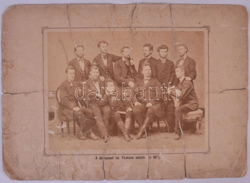 Beschreibung: 1872-1873 A debreceni református főiskolai esküdti kar tagjai, kartonra kasírozva, 33x46cm (sérült)