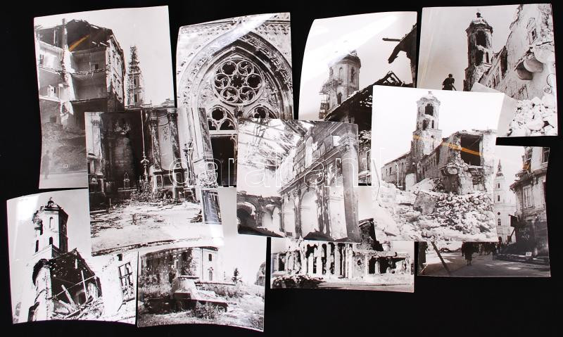 Beschreibung: 1945-1946 11 db fotó a II világháború pusztításáról Csörgeő Tibor, Angelo, Szöllősy Kálmán fotóin