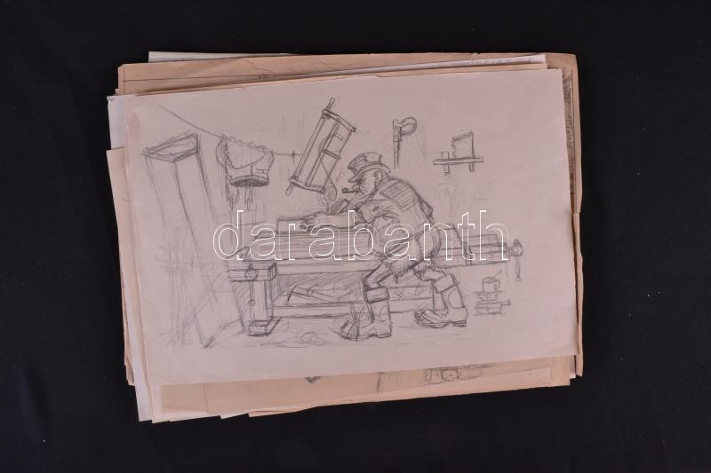 Beschreibung: Ék Sándor (1902-1975): 39db skicc (1945-1948). Grafit, papír, részben jelzett, cca 40x30cm