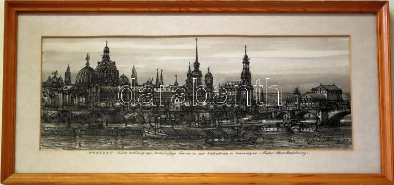 Beschreibung: F. Herrmann: Drezda, tus, papír, jelzett, 31×64 cm, üvegezett keretben