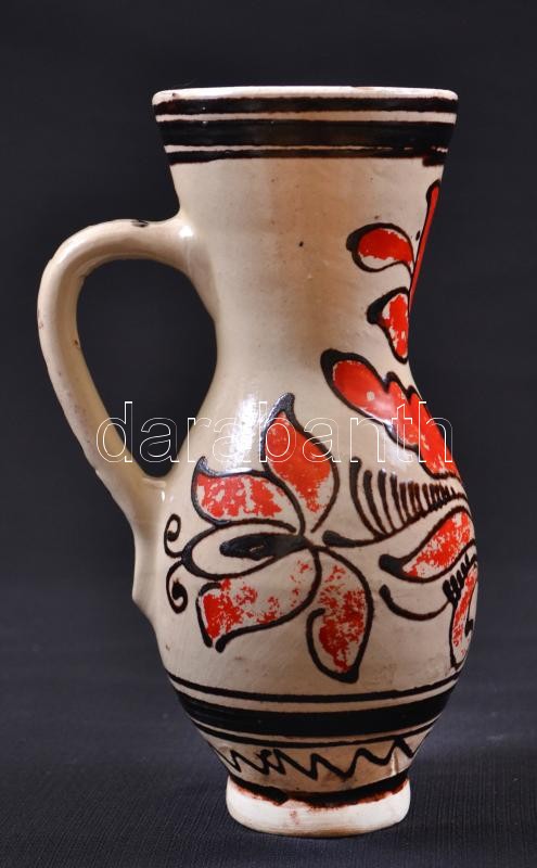 Beschreibung: Cca 1900 kézzel festett, mázas kerámia korsó, jelzés nélkül, m:20 cm