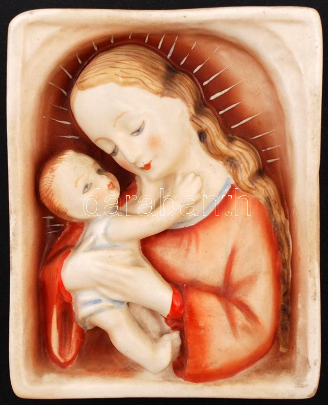 Hummel Madonna a kis Jézussal fali kép, kézzel festett, jelzett, hibátlan, 7,5×10 cm/ Hummel Madonna with child Jesus, signed "48/0" form nummber, good condition