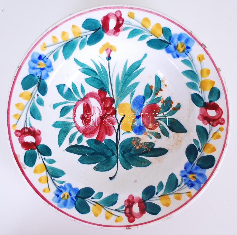 Folcloristic cer... https://www.darabanth.com/de/182-Fernauktion/182.0/Andere-Sammelgebiete/Keramiken~400006/Kezzel-festett-regi-Hollohazi-keramia-disztanyer--3Cbr3EFolcloristic-ceramic-plate-d-23~II651402