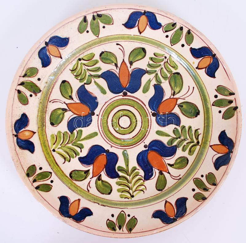 Beschreibung: Népi fazekas falitányér, kézzel festett, mázas kerámia, apró hibákkal, d:29 cm