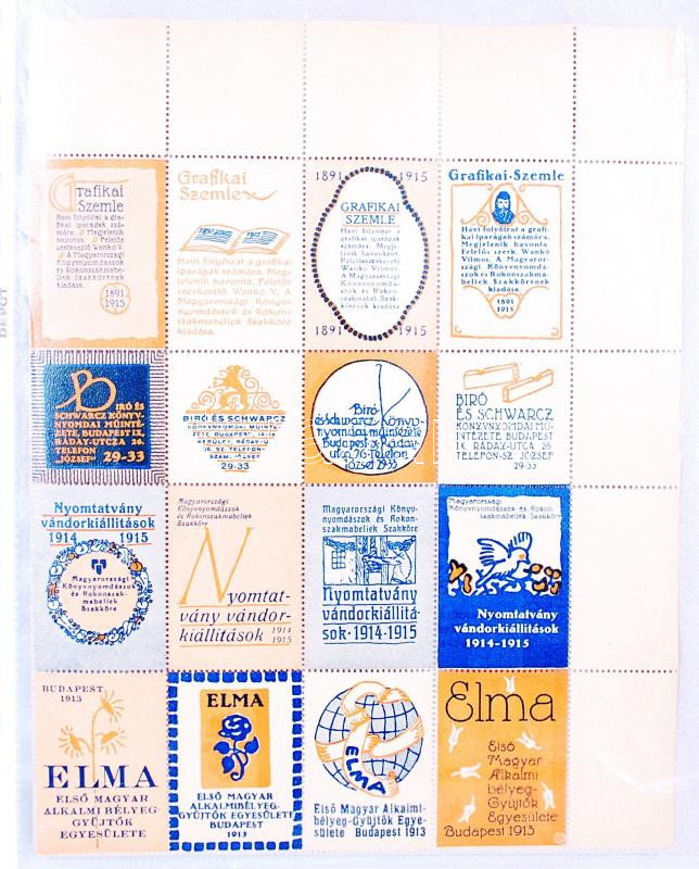 Beschreibung: 1913-1915 ELMA, Grafikai Szemle, stb... klf 16 db levélzárót tartalmazó kisív
