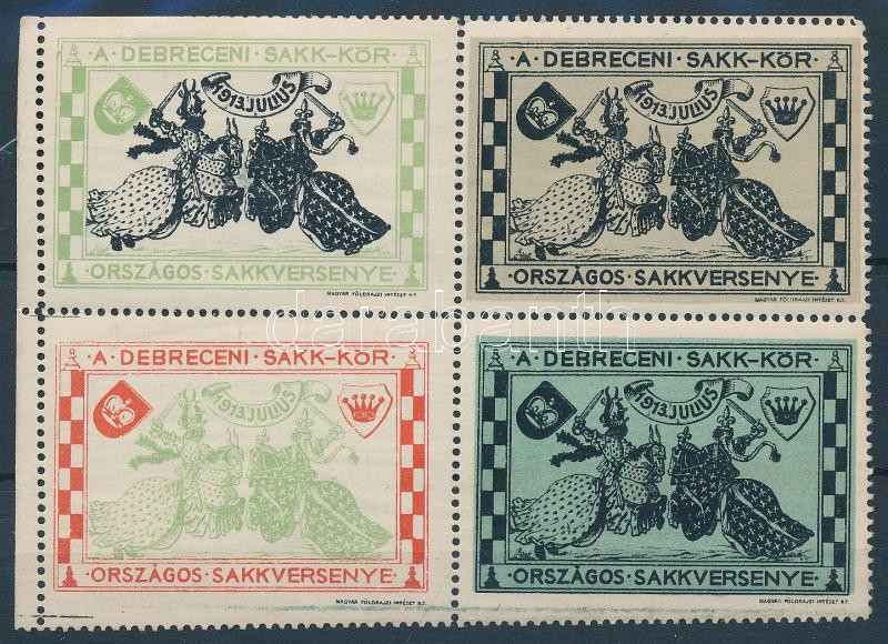Beschreibung: 1913 Debreceni sakkverseny levélzáró négyestömb / Debrecen chess tournament labels block of 4