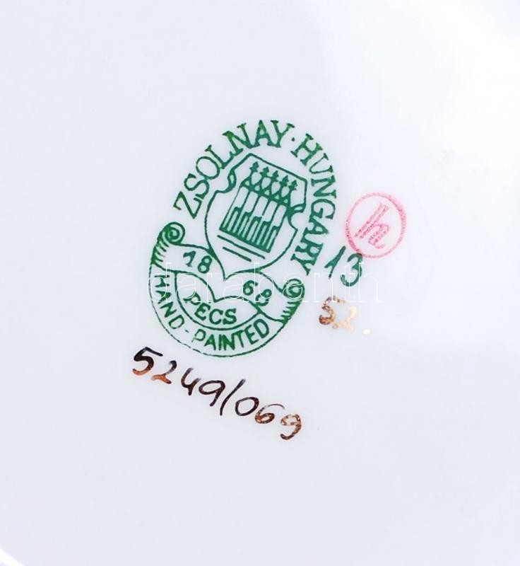 Kézzel festett Zsolnay mini kaspó, jelzett, hibátlan / Hand painted Zs... https://www.darabanth.com/de/182-Fernauktion/182.0/Andere-Sammelgebiete/Porzellan~400007/Kezzel-festett-Zsolnay-mini-kaspo-jelzett-hibatlan-Hand-painted-Zsolnay-pot-d10-cm-m7-cm~II655283