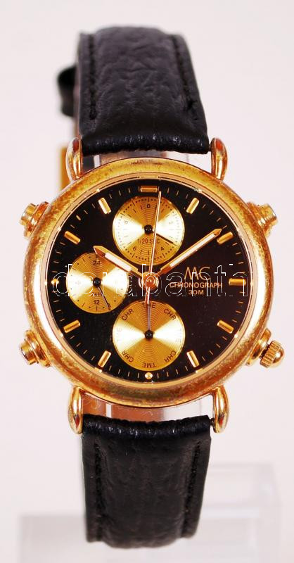MC Chronograph 30M férfi karóra rozsdamentes acél hátlappal, bőrszíjjal, vízálló, jól jár /