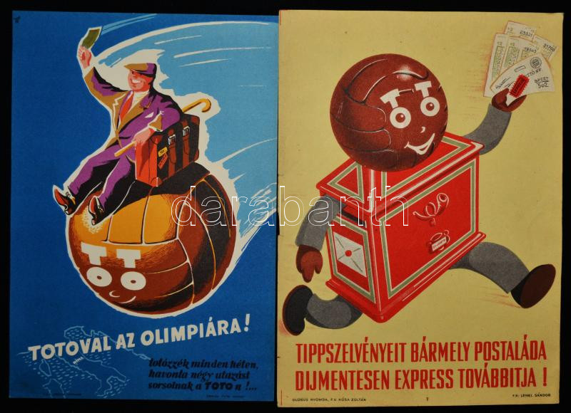 cca 1960 2 db TOTO reklám kisplakát 16x24 cm https://www.darabanth.com/de/182-Fernauktion/182.0/Andere-Sammelgebiete/Werbungen~400020/cca-1960-2-db-TOTO-reklam-kisplakat-16x24-cm~II652817