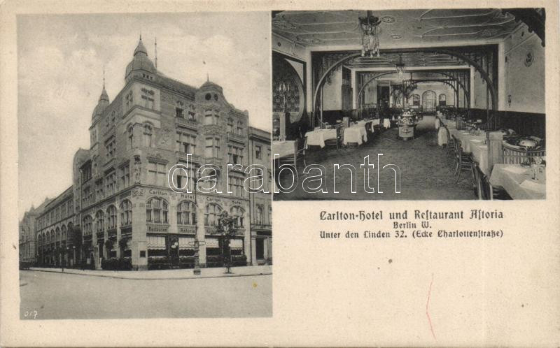 Berlin Unter den Linden 32., Carlton Hotel and Restaurant Astoria https://www.darabanth.com/de/182-Fernauktion/182.0/Ansichtskarten/Deutschland~400421/Berlin-Unter-den-Linden-32-Carlton-Hotel-and-Restaurant-Astoria~II650625