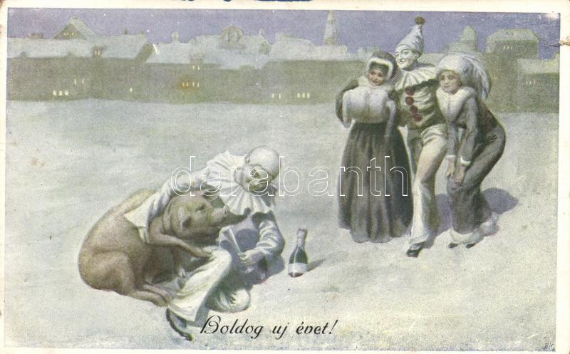 New Year, drinking with pig (b) https://www.darabanth.com/de/182-Fernauktion/182.0/Ansichtskarten/GruC39Fkarte~400404/New-Year-drinking-with-pig-b~II650569