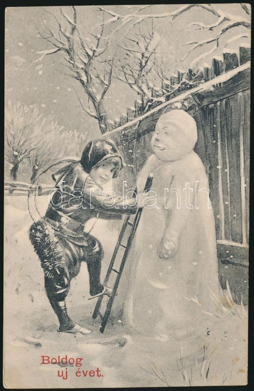 New Year, snowman, chimney sweeper https://www.darabanth.com/de/182-Fernauktion/182.0/Ansichtskarten/GruC39Fkarte~400404/New-Year-snowman-chimney-sweeper~II655343