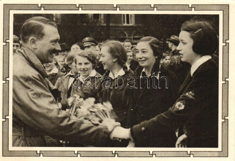 Adolf Hitler with schoolgirls, NS propaganda, Ga, So. Stpl https://www.darabanth.com/de/182-Fernauktion/182.0/Ansichtskarten/Herrscher-Politiker-Konigshauser~400401/Adolf-Hitler-with-schoolgirls-NS-propaganda-Ga-So-Stpl~II612944